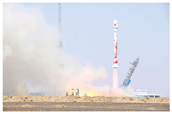 5月17日12时12分,朱雀二号改进型遥二运载火箭在东风商业航天创新试验区发射升空,将搭载的天仪29星、天仪34星、天仪35星、天仪42星、天仪45星、天仪46星共6颗卫星顺利送入预定轨道,飞行试验任务获得圆满成功。 新华社发(汪江波摄)