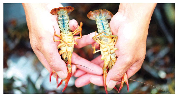 刚捕上来的小龙虾腹部洁净透亮。记者李忠波 摄