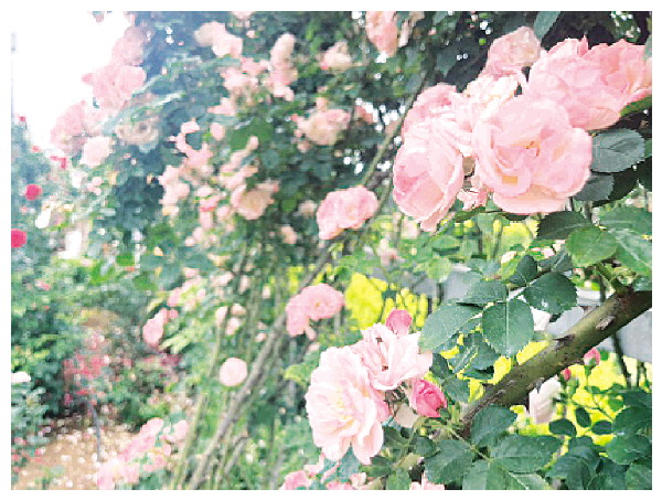 图④:蔷薇、月季开爆了。