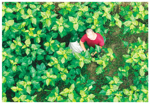 ▲广福乡大石村蚕农在采摘桑叶。 记者李忠波 摄