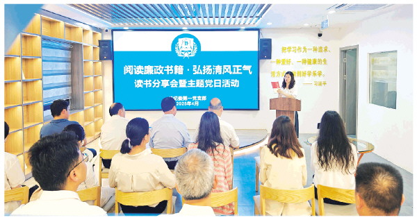 ▲近日,恭城瑶族自治县纪委第一党支部组织开展“阅读廉政书籍,弘扬清风正气”主题党日读书分享会,5名党员结合工作实际与学习廉政书籍的感悟开展深度分享。分享会后,党员们共同观看了廉政警示教育宣传片,以真实案例为镜鉴,在书香与警示教育片中筑牢思想防线。 费柳洁 摄