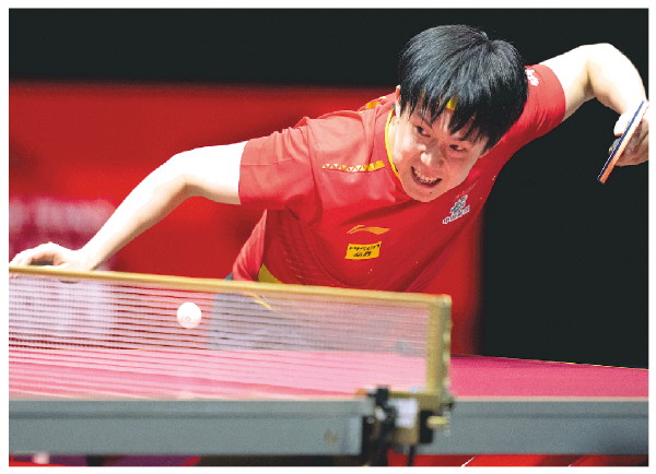 ▲5月24日,王楚钦在比赛中回球。 新华社记者肖艺九 摄