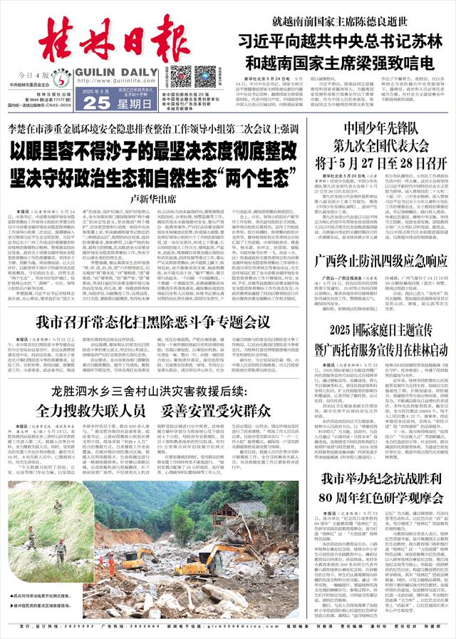 80周年红色研学观摩会   本报讯(记者陈娟)5月23日,我市举办“纪念抗日战争胜利80周年”主题教育暨“桂林红”红色研学实践思政教育观摩会,着力打造“桂林红”这一“大思政课”桂林特色品牌。