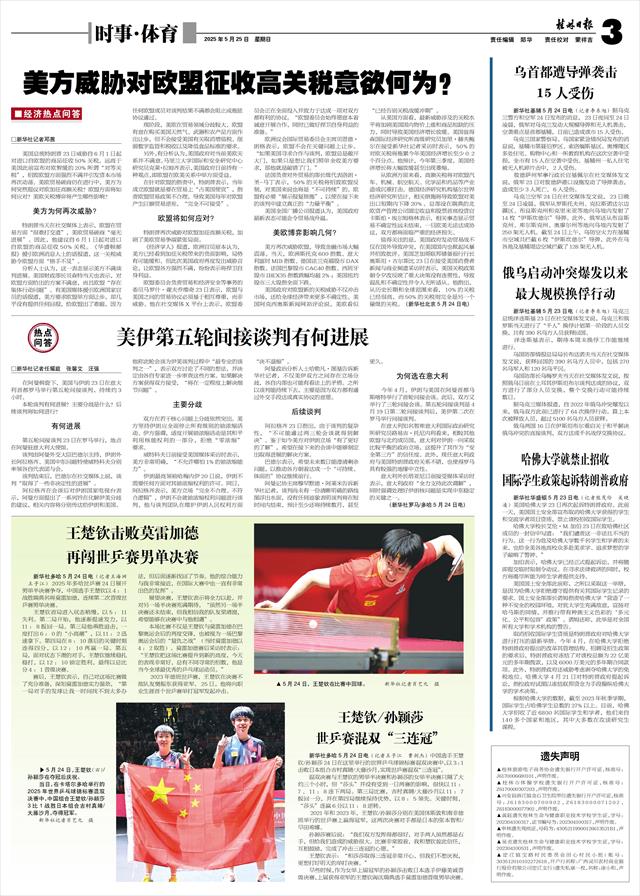再闯世乒赛男单决赛   新华社多哈5月24日电(记者王海洲 王子江)2025年多哈世乒赛24日展开男单半决赛争夺,中国选手王楚钦以4:1战胜瑞典名将莫雷加德,连续第二次晋级世乒赛男单决赛。