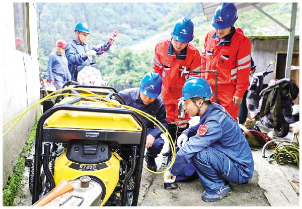 供电抢修人员向受灾区域紧急运送应急发电设备,保障群众生活用电。 韦祎 摄