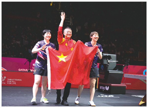 当日,在卡塔尔多哈举行的2025世界乒乓球锦标赛女子双打决赛中,中国组合王曼昱/蒯曼3比0战胜波尔卡诺娃(奥地利)/斯佐科斯(罗马尼亚)组合,夺得冠军。