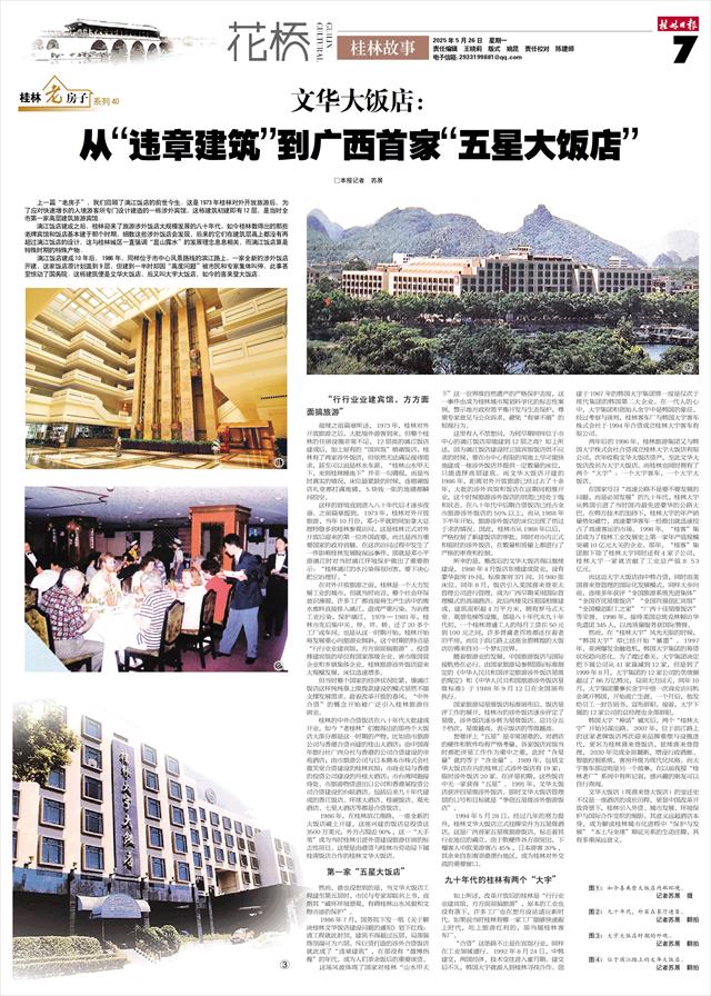 1986年7月,国务院下发一纸《关于解决桂林文华饭店建设问题的通知》划下红线:该工程就此封顶,建筑不得超过五层,局部装饰顶端可为六层。斥巨资打造的涉外合资饭店就此成了“违章建筑”,在那没有“微博热搜”的年代,成为人们茶余饭后的重要谈资。