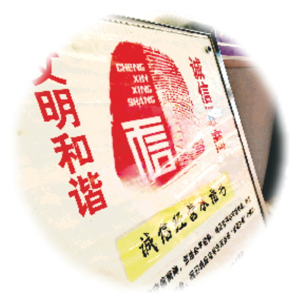 诚信是商家的立足之本。图为我市一家商场内摆放的宣传牌。