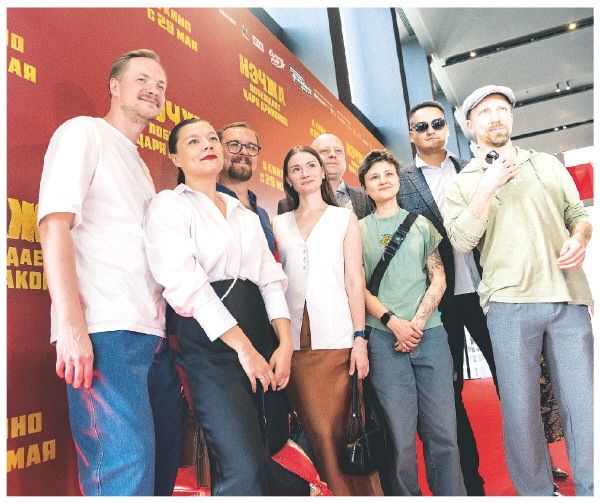 ▲5月25日,在俄罗斯首都莫斯科,《哪吒之魔童闹海》俄文配音版译制团队成员在影片首映活动上合影。