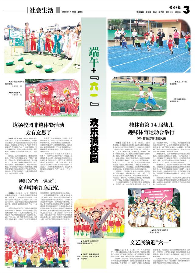 太有意思了   本报讯(记者陈静 通讯员蒙林)端午节和“六一”儿童节即将接踵而至。当传统佳节邂逅儿童节会碰撞出怎样的火花?5月26日,市临社小学举办了以“端午古韵非遗文化”为主题的“六一”儿童节活动,学生们身着汉服,沉浸式感受中华传统文化的魅力,在趣味互动中传承非遗文化,共庆双节。