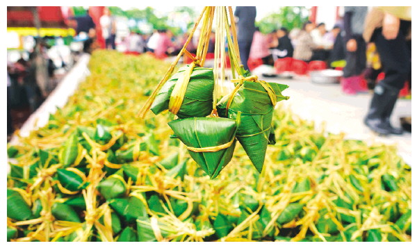 经2个多小时协作,一万多个粽子呈现眼前。这些“暖心粽”将分发给800多户村民,传递节日味道。93岁的万奶奶边包边笑:“跟晚辈们一起包粽子,开心!”