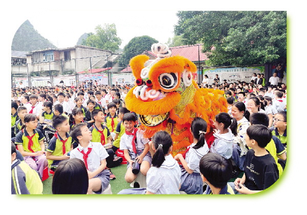 5月30日,市飞凤小学的校园里锣鼓喧天,一场别开生面的“萌狮贺‘六一’”表演正在火热上演。各种颜色的醒狮在欢快的鼓点中摇头摆尾,时而俏皮地眨着眼睛跟同学们互动。学校特意邀请桂林学院参与此次活动,该校的龙狮运动协会进行传统非遗文化青春创意展演,魔力啦啦操队则向孩子们表演了劲爆的啦啦操。“这是我们收到的最特别的‘六一’礼物!”飞凤小学的孩子们表示。