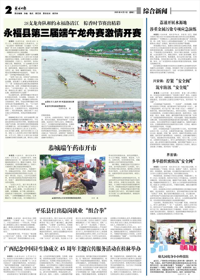 本报讯(记者李忠波 通讯员王琰)6月2日,永福县洛清江上热闹非凡,以“状元故里·粽香传情”为主题的“太平洋建设”杯2025永福县第三届端午龙舟赛暨城际龙舟邀请赛在此激情开赛,为观众带来一场精彩纷呈的水上竞技盛宴。