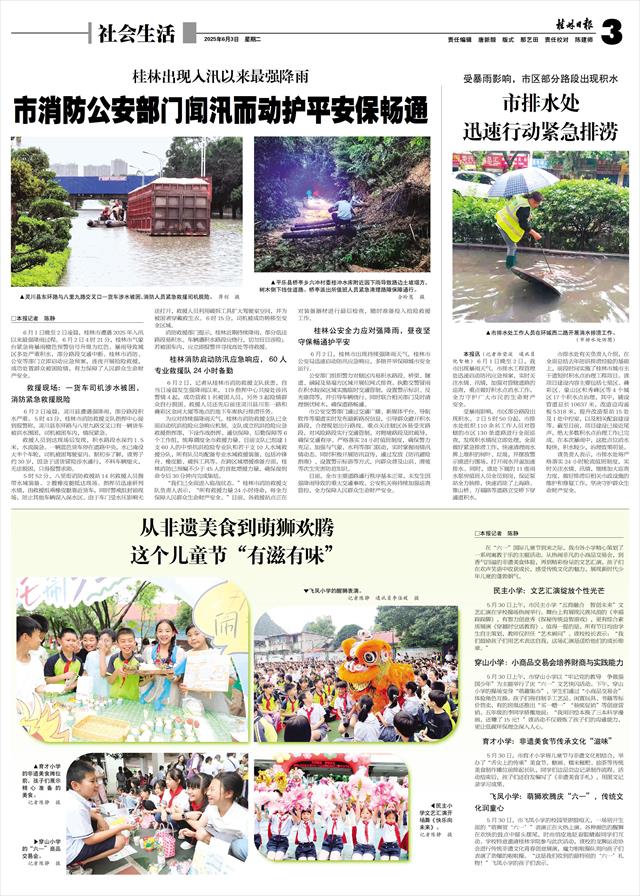 6月1日晚至2日凌晨,桂林市遭遇2025年入汛以来最强降雨过程。6月2日4时21分,桂林市气象台紧急将暴雨橙色预警信号升级为红色。暴雨导致城区多处严重积水,部分路段交通中断。桂林市消防、公安等部门立即启动应急预案,连夜开展抢险救援,成功处置群众被困险情,有力保障了人民群众生命财产安全。
