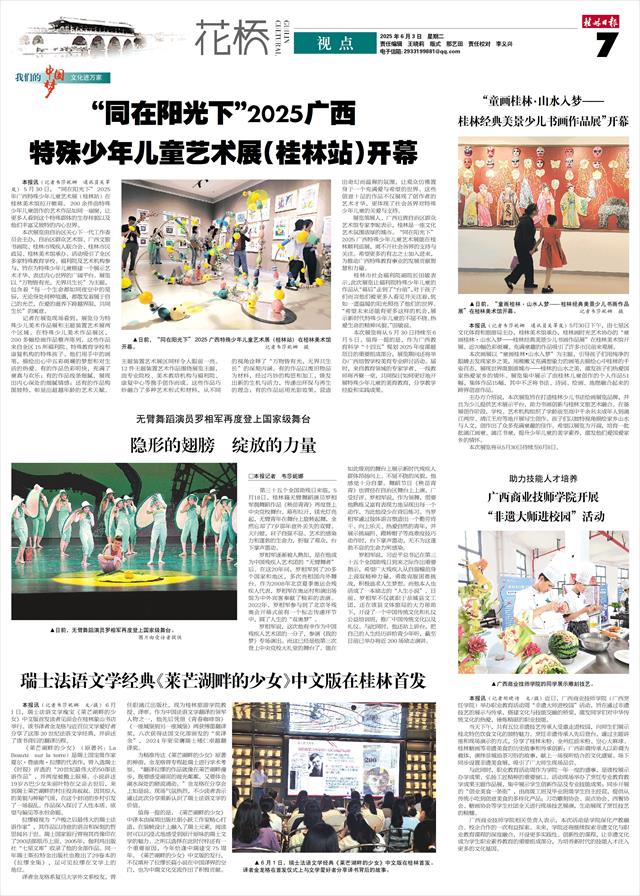 本报讯(记者韦莎妮娜 通讯员吴莘岚)5月30日,“同在阳光下”2025年广西特殊少年儿童艺术展(桂林站)在桂林美术馆拉开帷幕。200余件由特殊少年儿童创作的艺术作品如同一扇窗,让更多人看到这个特殊群体的生存样貌以及他们丰富又独特的内心世界。
