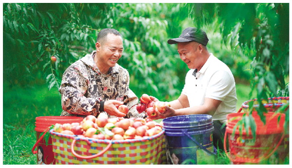看到油桃丰收,灵川县海洋乡海洋村的果农笑容灿烂。