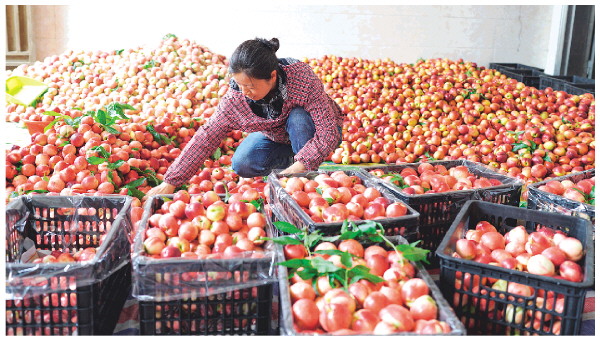 “今年的雨水对桃树的挂果量有一定影响,但是行情还不错。”正在桃园里采摘油桃的果农刘建平告诉记者,他和当地大多数果农一样,5月中旬开园卖油桃,5月底和6月中旬迎来油桃上市高峰。近期油桃的批发价相对稳定,在4—7元/公斤。采访当日,他采摘了一批上等果,批发价达8元/公斤。刘建平粗略算了算,他家今年种植油桃20亩,亩产量在3000—4000斤,亩产值约8000元,总产值约16万元。