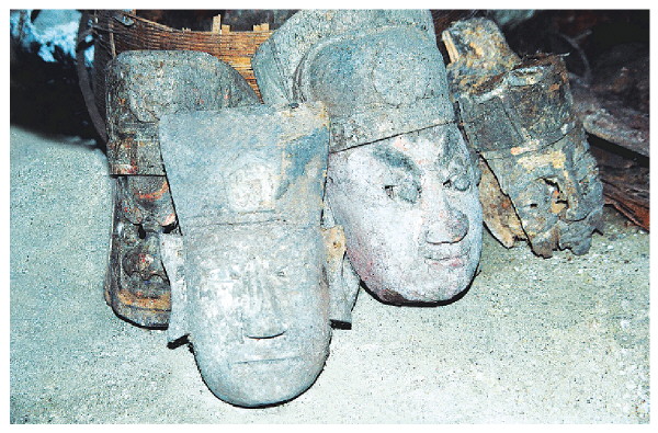 图④:尘封已久的塘北村傩舞面具堆放在角落里。