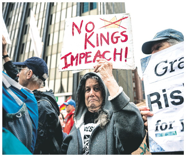6月14日,在美国马萨诸塞州波士顿,人们参加“不要国王”抗议活动。