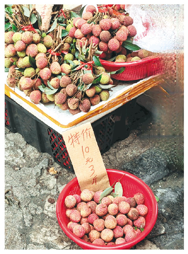 ▲十元三斤的特价荔枝,让普通市民实现了“荔枝自由”。