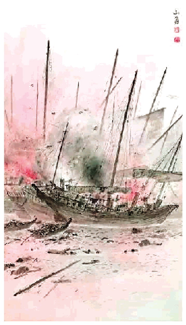 1932年,才20岁的关山月还未正规学画,就已经开始画抗战题材的作品。当年他画的第一幅抗战宣传画,题目是《来一个杀一个》,用一块白布画着,就挂在家乡阳江最热闹的南恩路上。1938年,广州沦陷之前,26岁的关山月历尽千辛万苦随大量难民徒步逃难至澳门。路上难民的艰难,日军的残暴,使这位身在难民穷厄之境中的年轻画家,愤然而起作画纪实以助抗战之心。