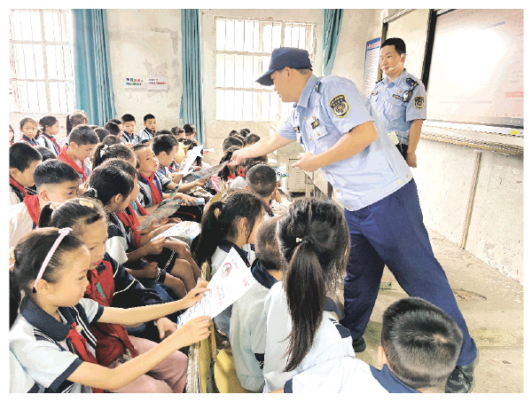 执法人员化身“安全讲师”,向师生们传递防溺水知识。王荣仕 摄