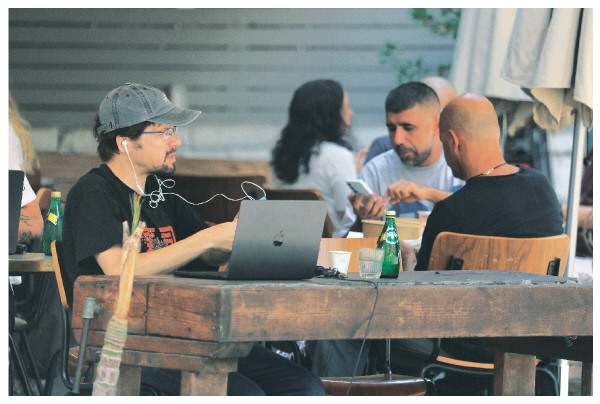 6月24日,在以伊停火协议生效后,人们在以色列特拉维夫街头休闲。 新华社发(吉德翁·马科维奇摄/基尼图片社)