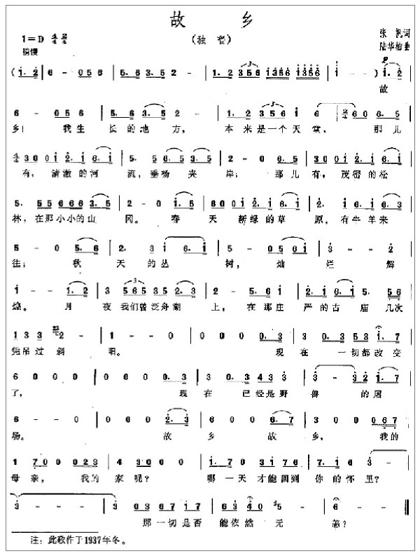 一曲《故乡》融入了陆华柏满心的思念与期待,也激起了广大民族同胞抗战的热情。这首歌曲不仅是陆华柏的成名之作,也标志着他的音乐创作已进入成熟期。