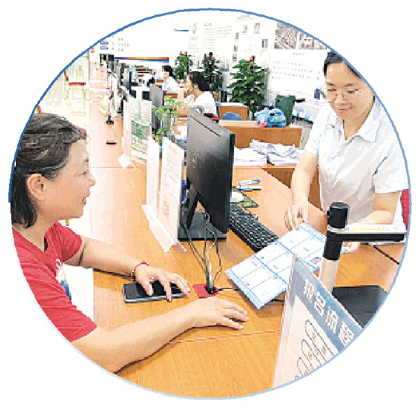 ▲陆通驾校办理大厅内,工作人员正在向市民讲解线上报名缴费流程。 记者蒋璇 摄
