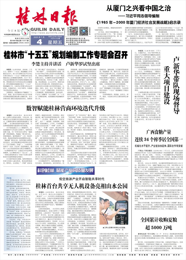 本报讯(记者周绍瑜 唐健扬)7月3日,桂林市“十五五”规划编制工作专题会议召开,深入学习贯彻习近平总书记在部分省区市“十五五”时期经济社会发展座谈会上的重要讲话精神、关于广西工作论述的重要要求和对桂林的重要指示精神,贯彻落实党中央和自治区有关部署要求,研究部署高质量做好我市“十五五”规划编制工作。市委书记李楚主持会议并讲话。市委副书记、市长卢新华,市委副书记罗试坚出席会议。