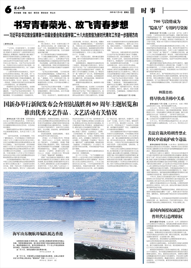 新华社北京7月3日电 国务院新闻办公室3日举行新闻发布会,介绍中国人民抗日战争暨世界反法西斯战争胜利80周年主题展览和推出优秀文艺作品、文艺活动有关情况。