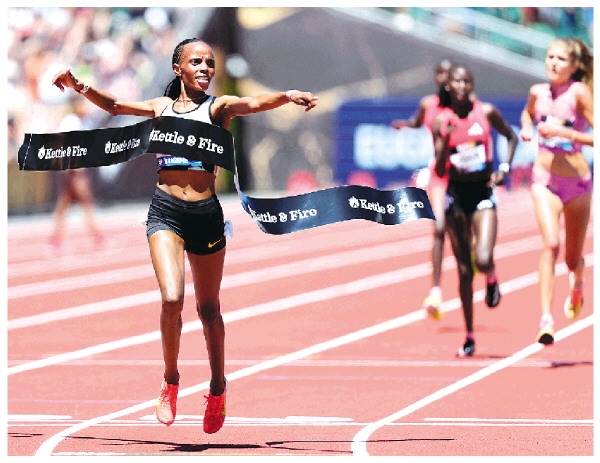 巴黎奥运会女子10000米、5000米双料冠军切贝特去年正是在尤金海沃德田径场创造了10000米世界纪录。此番重回海沃德,切贝特在5000米赛场上势头依旧强劲。她以13分58秒06的成绩将世界纪录提升了2.15秒,成为史上首位在该项目中突破14分大关的女运动员。