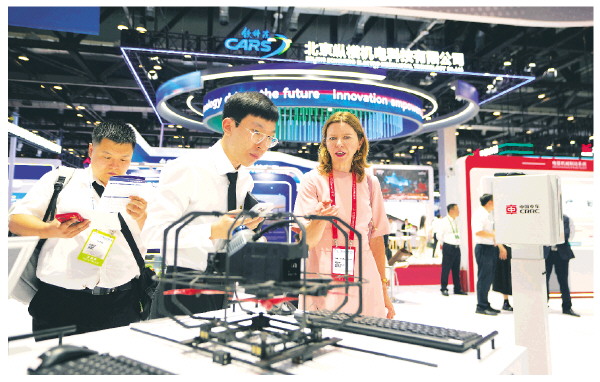 7月8日,观众在第十七届中国国际现代化铁路技术装备展览会上参观。