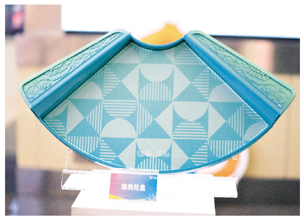 这是7月8日拍摄的成都世运会颁奖托盘。颁奖托盘整体为圆润流畅的扇形,握柄处浮雕太阳神鸟振翅纹与芙蓉盛放图二者交融,诠释“金乌负日、花重锦官”的时空对话。