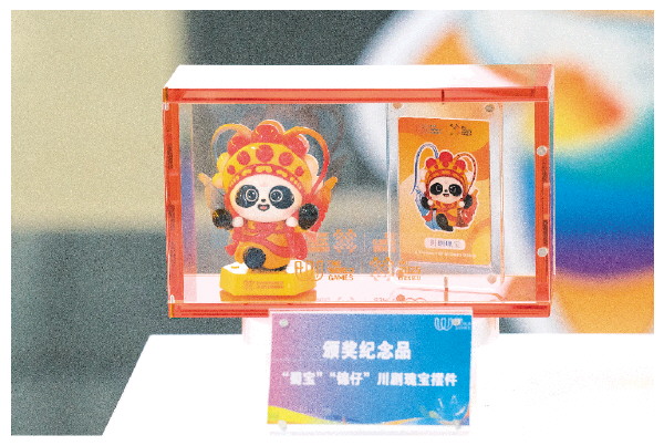 这是7月8日拍摄的成都世运会颁奖纪念品——“蜀宝”“锦仔”川剧瑰宝摆件。“蜀宝”“锦仔”以川剧变脸艺术为灵感,创新设计双面一体背对背的玩偶。