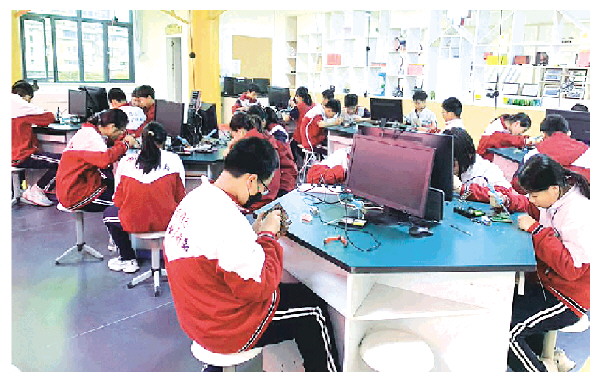 理志赋能,激发创新潜能。作为2025年国家重点项目、科技部农村地区教师教学能力智能评测与教学精准辅助技术研究平台应用示范学校,自治区基础教育信息化融合创新实验校、自治区信息技术应用2.0示范学校,桂林市创客教育试点学校和桂林市数字化校园示范校,桂林十四中实施了学科课程与学法指导双轨并行,在创客空间里,机器人编程、航模制作、人工智能启蒙等社团活动蓬勃开展。