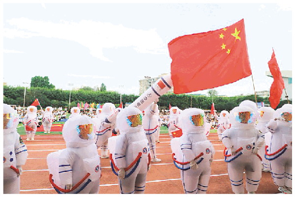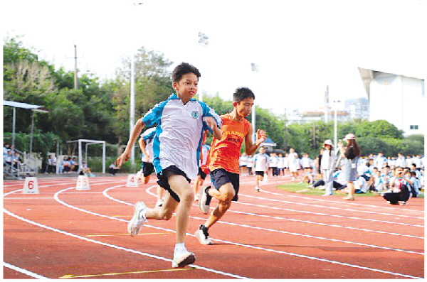不仅如此,学校坚持组织学生每天一次跑操,科学合理地利用大课间,统一安排励志跑操活动,使大课间活动开展得有声有色;每周2—3节体育课,开展篮球、足球、乒乓球、羽毛球、跑步、体操、跳绳等形式多样的运动,舒展了学生的身心,强健了学生的体魄;每学期一次全校足球比赛,提高了学生的足球技能,增强了团队合作意识,营造出浓厚的校园足球氛围;每学年一次的全校田径运动会,培养了学生参与运动的热情,激发了学生勇于挑战自我、战胜自我的顽强意志,展现了学生团结进取、蓬勃向上的精神风貌。