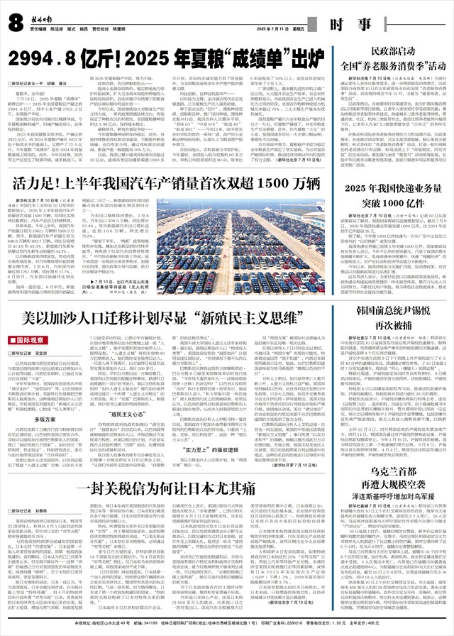 与其他收到特朗普信函通知的国家相比,日本尤其“百感交集”:日本是第一个加入对美贸易谈判的国家,却第一批收到加税通知;谈判期间,日本认为自己已对美作出诸多让步,但关税不降反升……这种“背刺”的痛感让日方对美国盟友的举动极度失望,深感待遇“降格”。至于未结的日美贸易谈判,更是笼罩阴云。
