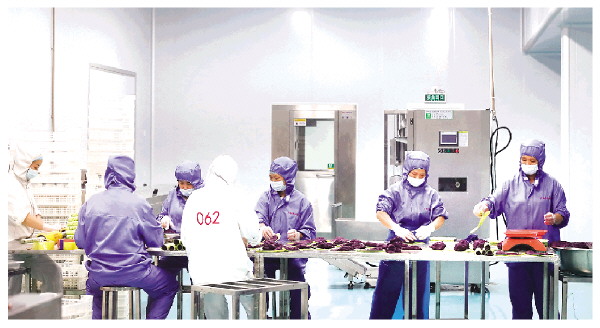 农行支持的企业正在生产芋泥产品。 伍文悄 摄