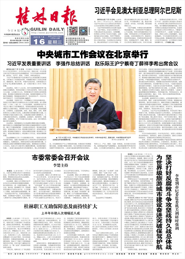 会议强调,要深入学习贯彻习近平总书记关于广西工作论述的重要要求和对桂林的重要指示精神,贯彻落实自治区党委和政府部署要求,聚焦科技赋能、产业转型、文旅焕新、县域经济,全力推动世界级旅游城市建设奋进突破。要全面推进产业振兴,大力发展新质生产力,做好人工智能发展文章,深入推进“科创桂林”建设,聚焦7大产业链延链补链强链,打造一批现代产业集群。要加快推进文旅焕新,一体推进业态、营销、管理焕新,加快上线“AI桂林”文旅大模型,做好“文旅+百业”文章,大力发展赛事经济、展会经济,培育打造一批现象级文旅产品,努力把客流量转化为经济增量。要始终绷紧防汛救灾这根弦,聚焦重点领域深入开展安全隐患排查整治,扎实做好安全生产工作。要坚持目标不变、力度不减、工作再加力,全力以赴抓好提振消费、招商引资、项目建设等各项稳增长工作,以不达目的不罢休的奋进姿态,坚决完成全年目标任务。