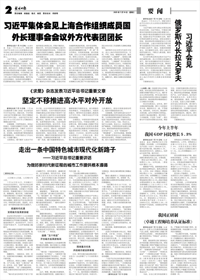 新华社北京7月15日电 7月16日出版的第14期《求是》杂志将发表中共中央总书记、国家主席、中央军委主席习近平的重要文章《坚定不移推进高水平对外开放》。这是习近平总书记2012年12月至2025年4月期间有关重要论述的节录。