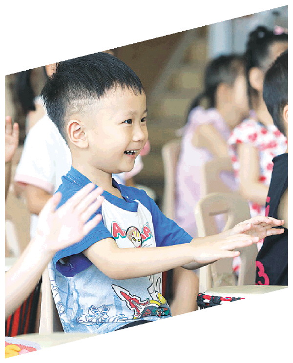 在湖南省永州市,小朋友在爱心暑托班学习非洲鼓。 (新华社发)