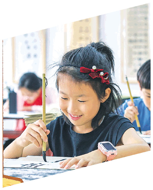 在江苏省南京市,小朋友在学习书法。(新华社发)