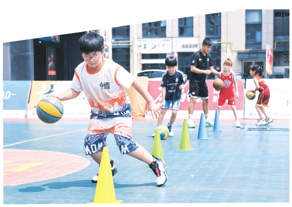 在浙江省诸暨市,篮球教练带领孩子们进行投篮、运球等基本训练。(新华社供图)
