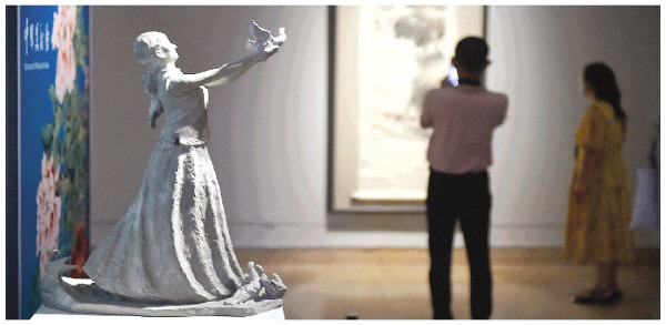 这是7月19日在中国美术馆拍摄的雕塑作品《和平》。
