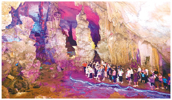 随着暑期来临,芦笛岩迎来游览高峰,来自各地的游客走进天然岩洞感受大自然的神奇。芦笛岩有着“大自然艺术之宫”的美誉,洞内温度常年保持在19℃左右,炎炎夏日,游客步入芦笛岩便感受到沁人心脾的凉意,漫步在岩洞中欣赏精美的钟乳石、石柱、石笋,美不胜收。
