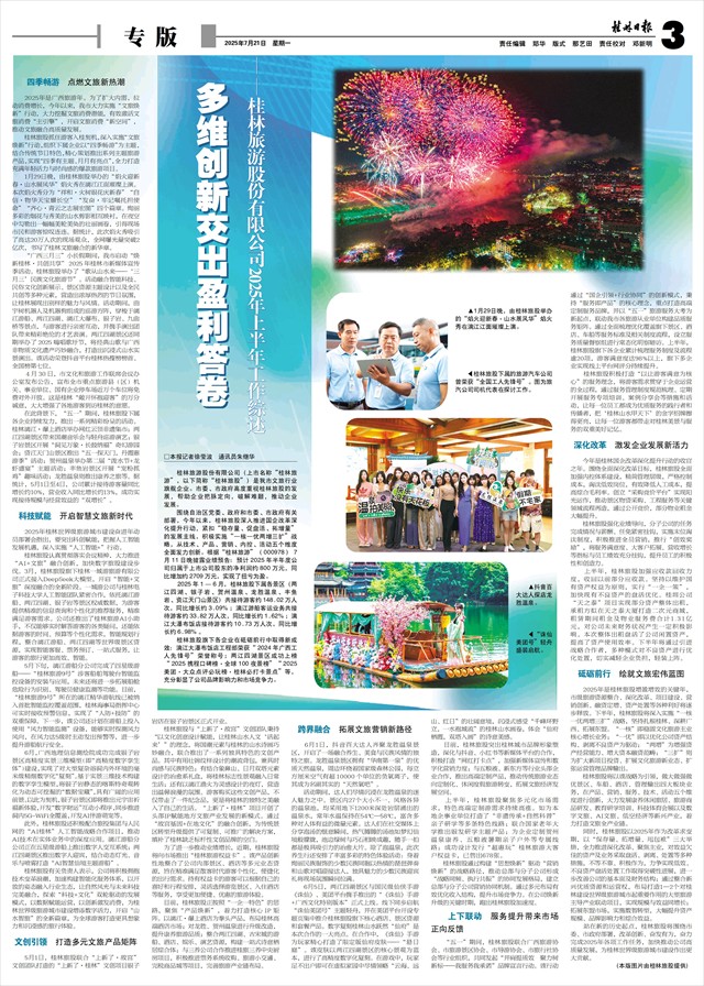 多维创新交出盈利答卷 ——桂林旅游股份有限公司2025年上半年工作综述   □本报记者徐莹波 通讯员朱继华
