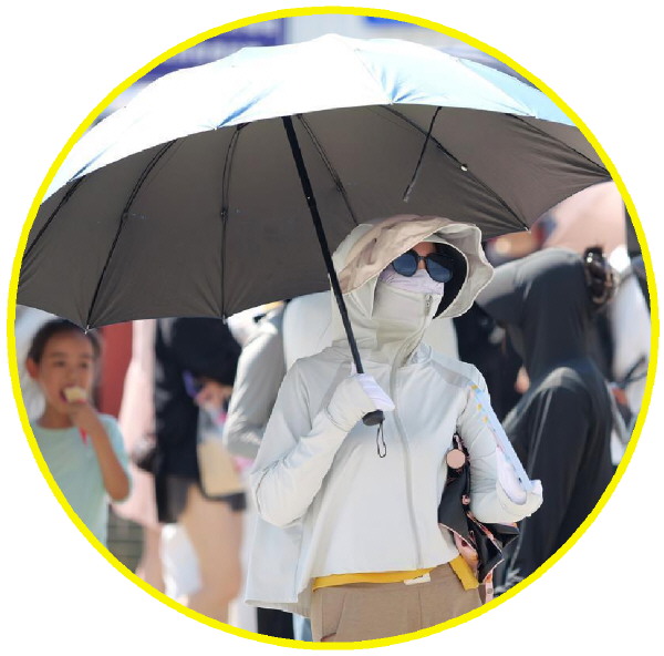 夏日炎炎,街头上的人们各种防晒装备齐上阵。(资料图片)