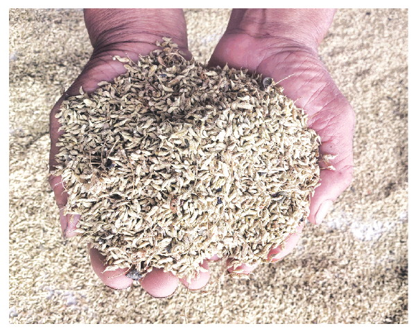 刚晾晒好的槐米。