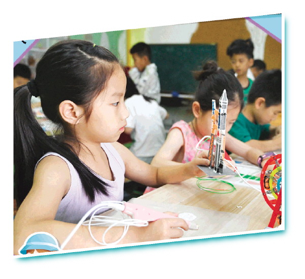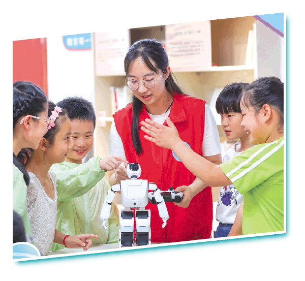 在江苏省南通市,暑托班志愿者与孩子们互动。